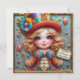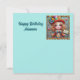 Una linda chica joven con un traje de artista de circo celebrando el cumpleaños de Arianna. Los saludos en la tarjeta son "Feliz cumpleaños Arianna". En la parte trasera de la tarjeta hay una pequeña versión de la imagen delantera, y mucho espacio para escribir un mensaje. Hecho con la ayuda de AI Bing.