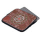 La mandala temática de Aries presenta una piedra de jaspe roja rodeada por el símbolo del signo, la constelación y el símbolo alquímico de Fuego entre filigree y tejidos.
