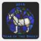Aries - Ventanas de vidrio manchado, Notre-Dame de Paris - en pegatina cuadrado de personalizable con telón de fondo negro y fecha. Puede cambiar fácilmente el texto (color, fuente, tamaño y posición) haciendo clic en el botón personalizar. Perfecto para el cumpleaños (personas nacidas como Aries o nacidas en el Año Ram Chino) o Año Nuevo Chino de La Ram, Oveja o Cabra. No olvides toda la colección.