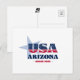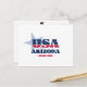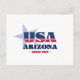 Postal de Arizona. Un diseño tipográfico creativo que encapsula la esencia de Arizona con colores rojo, blanco y azul audaces y elementos patrióticos, incluidas estrellas y rayas.