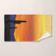 Esta toalla de baño muestra un cuadro digital de una foto original de Karen Coffelt de un naranja brillante y una puesta de sol amarilla sobre las montañas azul-violeta del desierto Sonorán de Arizona con cactus Saguaro en silueta. El desierto del suroeste presenta algunas de las puestas de sol más asombrosas de cualquier región de los Estados Unidos. Esta es una vista del sendero Massacre Grounds en el área silvestre de la Superstición, que está justo a las afueras del Parque Estatal Lost Dutchman en Apache Junction, Arizona, y es un popular destino de senderismo en otoño, primavera e invierno. Personalizar esto con tu nombre u otro texto usando los diferentes estilos de fuente y colores de Zazzle. Añada uno o más de los muchos iconos divertidos que Zazzle ha proporcionado para usted o personalizar en la herramienta de diseño haciendo clic en "clic para personalizar más adelante". ¡Diviértete haciéndolo propio! Si necesitas ayuda, por favor no dudes en contactarme, y estaré más que contento de ayudarte. Puede ponerse en contacto conmigo en KarenCoffelt@wolfmoonartanddesign.com.¡Gracias por buscar! Derechos de autor del arte digital original 2020 de Karen Coffelt.