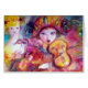 Amor romántico entre Arlecchino y Colombina : Violín colorido, caprichoso, una hermosa mujer rubia con disfraces con aroma de plumas y una rosa roja dorada . .Pintura acuarela de colores vivos rosa, fucsia, verde, rojo, azul, amarillo , chispas doradas inspiradas en la Comedia del Arte (Commedia dell'arte) y el Carnaval de Venecia . También es un hermoso regalo para navidades, vacaciones, ocasiones especiales, fiestas de cumpleaños, baile de máscaras de Nochevieja, El día de San Valentín.