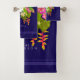 Jardín tropical con diseño de loro y mariposa.