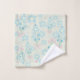 Una armoniosa mezcla de flores azules suaves con centros amarillos pálidos, atados con arcos rosas dulces, dispuestos en diferentes tamaños. Los delicados ramos se entremezclan con gusto a través de un suave fondo verde pastel amarillo-verdoso, que irradia un sentimiento de calma y simpleza.