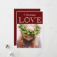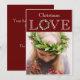 Dulce sentimiento de "Amor de Navidad" en la parte superior de esta tarjeta con acento de corona de eucalipto dibujada a mano. Fondo de color rojo festivo. Agregue su foto personal para personalizar esta dulce tarjeta de Navidad. ¡Zazzle ofrece 100% de satisfacción del cliente todos los días!