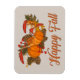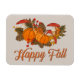 Bonito arreglo otoñal con calabazas, pinos, bayas y un imán de setas. Texto "Happy Fall"
