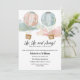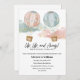 Crea una celebración con un cielo alto con esta encantadora invitación a revelar el género de globos aerostáticos! Con globos acuáticos pintados a mano en rosa y azul suave, flotando a través de nubes pastel con acentos brillantes dorados, este diseño marca el tono para una revelación mágica y caprichosa.