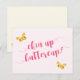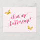NewParkLane - Tarjeta postal, con adorables mariposas amarillas y una dulce cita: "¡Chin up buttercup!" en tipografía elegante de color rosa caliente, sobre un fondo rosa suave.
