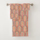 Un diseño visualmente impresionante que combina tonos tierra de terracota con un vibrante espectro arcoiris. Las toallas tienen una textura de malla que añade profundidad y dimensión al patrón, haciéndolo sentir casi tridimensional. La combinación única de colores cálidos y fríos en este diseño lo convierte en una elección versátil para cualquier decoración de baño. Los tonos de terracota aportan un toque natural y orgánico al lugar, mientras que los acentos arcoiris aportan un toque alegre y colorido