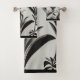 Bring timeless glamour to your bathroom with this elegant three-piece towel set inspired by classic Art Deco design. Featuring symmetrical black florals, soft ivory tones, and refined gold accents, this pattern evokes vintage luxury with a modern finish. The coordinated bath towel, hand towel, and wash cloth create a polished, cohesive look—perfect for elevating everyday spaces, guest bathrooms, or adding a touch of 1920s-inspired sophistication to your home.