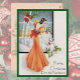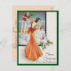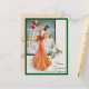 Una reproducción de bonito de una tarjeta de Navidad vintage, ha sido editada para limpiar la imagen, y tiene una reproducción de una postal vintage en la parte de atrás para que puedas escribir un mensaje. Envíelo por correo o dáselo con un regalo de Navidades para añadir un toque de brillo. Se trata de una mujer de estilo Art Déco con una corona de Navidades y un perro pequeño. Personalizar con tu nombre para personalización.