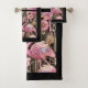 Elevate your home décor with this Art Deco black and pink flamingo retro towel set, featuring a bold geometric flamingo design inspired by classic 1920s and 1930s Art Deco style. Faceted rainbow and pink flamingos, clean symmetrical lines, and jewel-like detailing create a striking vintage-modern look that blends retro elegance with contemporary luxury. Theflamingo represents fun, tropical weather and luxury making this design both meaningful and visually captivating.