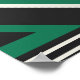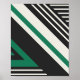 Esta obra de arte abstracta muestra un diseño geométrico limpio y estructurado dominado por los colores verde, negro y blanco. La composición presenta líneas diagonales entrelazadas y triángulos, creando un sentido de movimiento y profundidad. Los elementos verdes contrastan marcadamente con el fondo negro y blanco, haciendo el diseño audaz y visualmente atractivo, con una estética minimalista pero moderna.