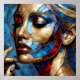 Una representación de la cara de una mujer con un estilo de cristal teñido. Colores vivos y patrones intrincados se juntan, creando un mosaico cautivador que capta la esencia de la belleza femenina.