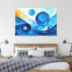 Una obra de arte abstracta pintada en tonos de azul y un toque de naranja