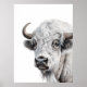 Arte Acuarela de Bisonte Búfalo Blanco