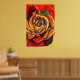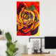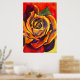 Hermosa pintura de arte original de Golden Rosa en rojo, naranja y dorado. Arte de color de agua.