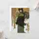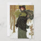 Ilustración antigua diseño navideño de Scribner's edición de Navidad de 1895 por Louis John Rhead. Esta portada de revista de arte nouveau presenta a una dama llevando plantas de muérdago a través de los árboles en el bosque durante la temporada de invierno con nieve en el suelo.