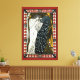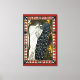 Ilustración vintage Arte Nouveau diseño de cartel publicitario de El Beso; Bradley his Book, 1896 por William Bradley. El Beso es un anuncio de amor y romance que presenta a una hermosa dama griega vestida con una larga toga fluida besando a un pavo real. El follaje, las plantas y las flores están en el fondo.