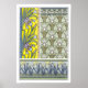 Ilustración antigua arte victoriano moderno decorativo diseño floral con una variedad de flores de jardín de primavera por Eugène Samuel Grasset. Iris barbudos amarillos y blancos floreciendo sobre un fondo verde en patrones de textil, azulejo y vidrieras.