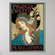 Diseño de cartel publicitario de ilustración antigua de Arte Moderno con las Publicaciones de Pascua de Prang por Louis John Rhead, 1895. El arte de la portada de las Publicaciones de vacaciones de Pascua de Prang presenta a una hermosa mujer victoriana con estilo bohemio. Tiene cabello rubio largo y fluido y sostiene una flor de lirio de Pascua.