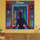 Arte digital colorido. Dama mirando por la ventana al universo.