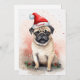 Arte de Acuarela de Pug de Navidad con Flor de Noc