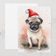 Arte de Acuarela de Pug de Navidad con Flor de Pas