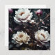Bonito de arte de ai floral. Flores blancas de fondo negro.
