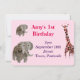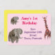 Invitación a una fiesta de cumpleaños con un elefante y una jirafa de mi pintura de vidrio original. Ideal para los niños amantes de los animales y/o para un tema de safari. Por favor, póngase en contacto conmigo si desea ayuda para personalizar. ©Annabel Potter