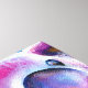 Divertido y pintado de forma brillante en papel de lienzo animal de Koala impreso en morado, azul, blanco con toques de naranja otoñal © Reproducido a partir de una pintura acrílica original de Sarah Trett. www.sarahtrett.com para www.mylittleeden.com