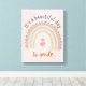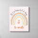Agrega un toque de calidez y positividad a tu espacio con este encantador arte de pared inspirado en el estilo boho. El diseño presenta un suave arcoíris de colores pastel con una serie de arcos en tonos suaves de durazno, menta y crema, cada uno decorado con patrones encantadores como conchas y pequeños corazones. En el centro del arcoíris, un solo corazón repite el mensaje que está encima: "Es un hermoso día para sonreír".
