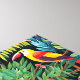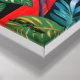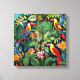 Ilustración de dibujos animados de pájaros en plantas de la selva con colores brillantes