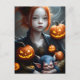 Sumérgete en lo místico con nuestra postal de Halloween de Joven Demonio y Mascota. Esta obra maestra del arte de fantasía presenta una cautivadora pintura de un demonio juvenil acunando a su mascota demoníaca en su regazo. La escena está adornada con varias calabazas intrincadamente talladas, lo que añade un toque espelantoso y encantador. Envía un saludo de Halloween que está lejos de ser ordinario con esta postal, que muestra el vínculo entre seres de otro mundo y celebra el espíritu de la temporada.