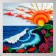 Una vibrante e intrincada obra de arte de filigrana de papel que muestra un amanecer, olas del océano y flores floreciendo, combinando motivos inspirados en la naturaleza y creatividad artística.
