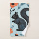 Ardilla negra y flores rojas, arte de los bosques.
