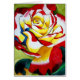 con diseño artístico original de la pintura acuarela de Sacha Grossel de la flor rosa de té híbrido rojo y amarillo contra fondo verde. Este diseño de arte contemporáneo y luminoso presenta un diseño macro floral de gran envergadura, con un motivo botánico, de un estilo luminoso, colorido para los amantes de las flores y los rosas.