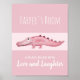 Este alentador y lindo arte para niñas presenta un cocodrilo/caimán de acuarela rosa, con espacio para agregar el nombre de su hijo o bebé y una descripción en hermosa tipografía. ¡Perfecto para la guardería de su bebé o la habitación de los niños! ¡Consulte el resto de nuestra colección para otros animales de la selva safari rosados en artículos coincidentes!