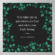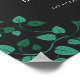 "Tienes que ir a aventuras para encontrar nuestro lugar al que realmente perteneces", cita impresa. Impresión de hojas verdes y texto blanco sobre un fondo gris oscuro.