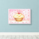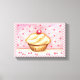 Esta impresión de arte de lienzo presenta un cupcake adorable con cerezas. La imagen es de una pintura original.