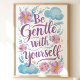 Nutre tu alma con esta serena impresión artística de "Sé amable contigo mismo". Con delicadas flores de acuarela y un mensaje tranquilizador en letra elegante, esta pieza es un suave recordatorio para practicar la autocompasión y priorizar el bienestar. Perfecta para agregar un toque de tranquilidad a tu dormitorio, baño o espacio de meditación.