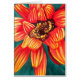 De una pintura vibrante del watercolour de un cierre macro encima del naranja del Gazania y de la flor del amarillo. Pintado por el artista Sacha Grossel del watercolour, esta flor surafricana nativa del desierto de la bella arte es brillante y de atontamiento contra un fondo verde oscuro.