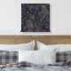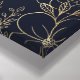 Elegante jardín de primavera delicado dorado con flores de diseño azul marino dibujado a mano, con una colección de falsos rosas metálicos de oro, margaritas doradas, tallarines de flores doradas, formas de hojas doradas de líneas verdes, sobre un fondo azul oscuro de color azul marino y azul marino. Naturaleza botánica minimalista y arte floral.