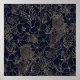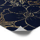 Elegante jardín de primavera delicado dorado con flores de diseño azul marino dibujado a mano, con una colección de falsos rosas metálicos de oro, margaritas doradas, tallarines de flores doradas, formas de hojas doradas de líneas verdes, sobre un fondo azul oscuro de color azul marino y azul marino. Naturaleza botánica minimalista y arte floral.