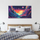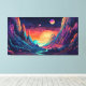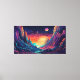 Plantilla de banner espacial psicodélico en estilo de arte de línea de manga anime ilustracion horizontal del paisaje futuro con montañas, planetas, árboles, luna concepto de escapismo surrealista
