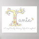 Hermoso arte de monograma con la letra T perfecto para el dormitorio o sala de juegos de una niña en tonos de gris, blanco, amarillo, rosa y morado. Personaliza con el nombre de tu hijo que comience con T, y el significado del nombre para un regalo verdaderamente personalizado y único para el dormitorio o nursery de tu hijo, este ejemplo es para el nombre T Una belleza real, llamativa, desafiante y mística. Impresión de cartel ideal para el dormitorio de una niña o para regalar a un bebé recién nacido, regalo de bautizo o baby shower. Monograma único de la letra T con corazones y flores y diseño gráfico por Sarah Trett. www.sarahtrett.com para www.mylittleeden.com