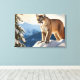 El arte de lienzo envuelto se muestra con una foto impresa de un hermoso león de montaña salvaje durante los meses de invierno. Imagen con licencia