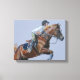 Hermosa pintura de un joven chica saltando su caballo. "Los obstáculos de la vida con gracia" de la artista animal Patricia Barmatz.