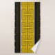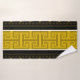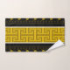 Este conjunto de toallas de baño está formado por formas clásicas de línea de guijarros griega con un fondo de lienzos negro y amarillo mostaza cálido, con una capa vertical de dos líneas finas y blancas que produce una impresionante interacción de contraste.