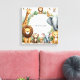 Este arte de pared personalizado con nombre de selva ofrece una forma encantadora y vibrante de personalizar el espacio de su hijo con una ilustración juguetona de tema safari que incluye un león, jirafa, elefante y mono, cada uno representado en texturas suaves de acuarela y colores terrosos que se mezclan perfectamente en la estética moderna de guarderías y habitaciones infantiles, lo que lo convierte en un regalo ideal para el regreso a clases o una idea de renovación de habitación para jóvenes estudiantes. El diseño presenta un área central en blanco grande intencionalmente dejada vacía para que los clientes puedan personalizarla fácilmente con el nombre de su hijo utilizando las herramientas de personalización integradas de Zazzle, agregando un toque reflexivo y único a cualquier espacio. Con su acabado de alta resolución y fondo blanco limpio, esta impresión artística funciona perfectamente en guarderías, habitaciones de niños pequeños, salas de juegos y aulas